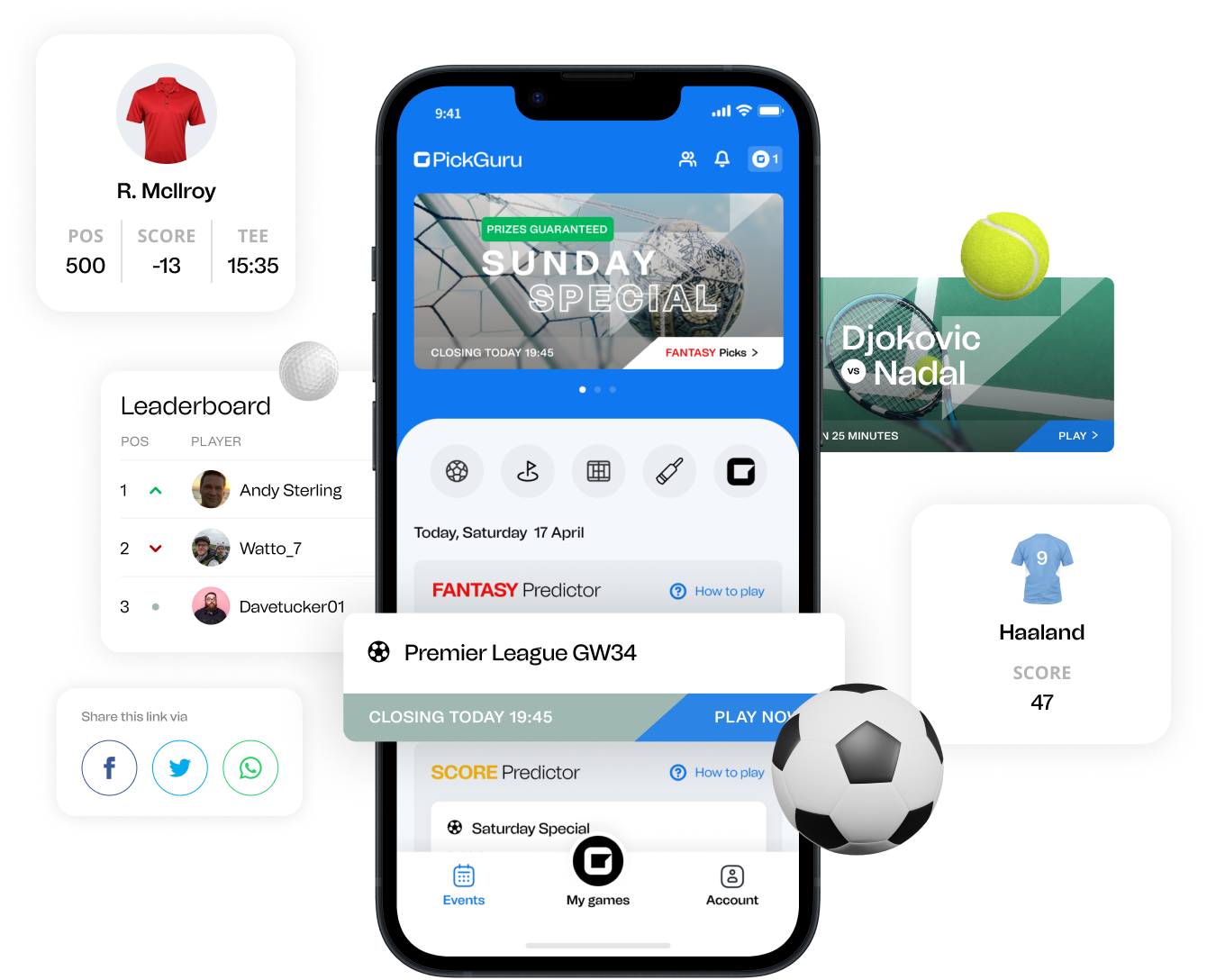 A complete customised gamification platform powered by PickGuru with all sports games & leaderboards.